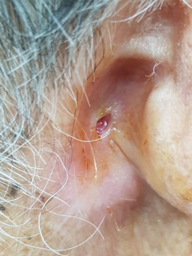 준비물 : 리도카인, 세균배양관, 모공, 식염수 드레싱 주사기, 마취주사기, 검체채취봉, 가위, 덩어리, 달력, 멸균거즈 및 포비돈, 글로로헥시딘, 생리식염수 => 이식메스, 세균배양액을 넣고, 이식액, 생리식염수, 용기에 깨끗한 거즈 + 두 개의 주사기를 분해하고, 드레싱 트레이를 무균적으로 열고 핀셋으로 깨끗한 거즈와 두 개의 주사기를 드레싱 트레이로 옮기고 멸균 장갑을 착용하고 드레싱 트레이에 11 번 메스를 삽입하십시오. 손잡이 : 손으로 칼 손잡이를 잡고 핀셋으로 농양 부위를 확인하고 베타딘면으로 소독 : 상처에서 원을 그립니다. 환부를 물집으로 덮음 주사기에 리도카인을 채워 마취 농양 주위에 바늘을 찔러 마취(국소마취와 동일) 농양의 지름을 따라 선형 절개를 하여 고름이 나오는지 확인 면봉이 다른곳에 묻지 않도록 주의하시고 수송배지에 넣어 주십시오. 농양에 지혈제를 삽입하고 벌리고 농양의 내벽을 제거하고 농양 내부를 플러시합니다. 농양 내부를 생리 식염수로 채운 주사기로 플러시합니다. 주변 피부를 누르면서 열어 생리식염수를 뿌린 후 세척 후 마른 거즈로 농양 내 물기를 닦아내고 포비돈 거즈로 농양을 감싼다. 포비돈 거즈를 절개 부위에 넣고 알맞게 채운 후 그 위에 거즈를 잘라 환부를 덮습니다. 노출된 포비돈 거즈가 배액관 역할을 하고 깨끗한 거즈를 완전히 덮고 농양 절개 부위를 붕대로 마무리합니다.