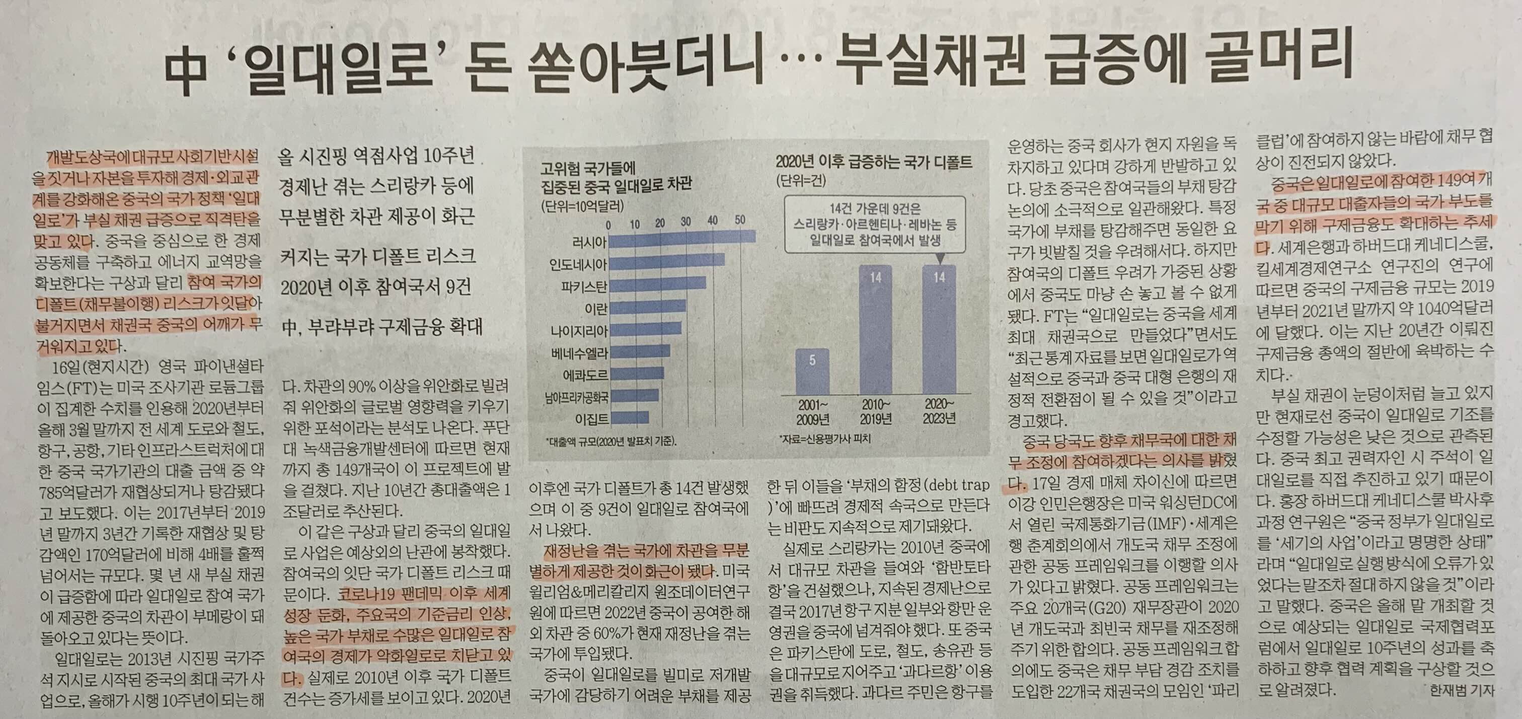 코로나19 팬데믹 이후 세계적 성장 둔화, 주요국 금리 인상, 높은 국가부채 등으로 일대일로에 참여하는 많은 국가들의 경제가 악화되고 디폴트(채무불이행) 리스크가 속속 등장했기 때문이다. .